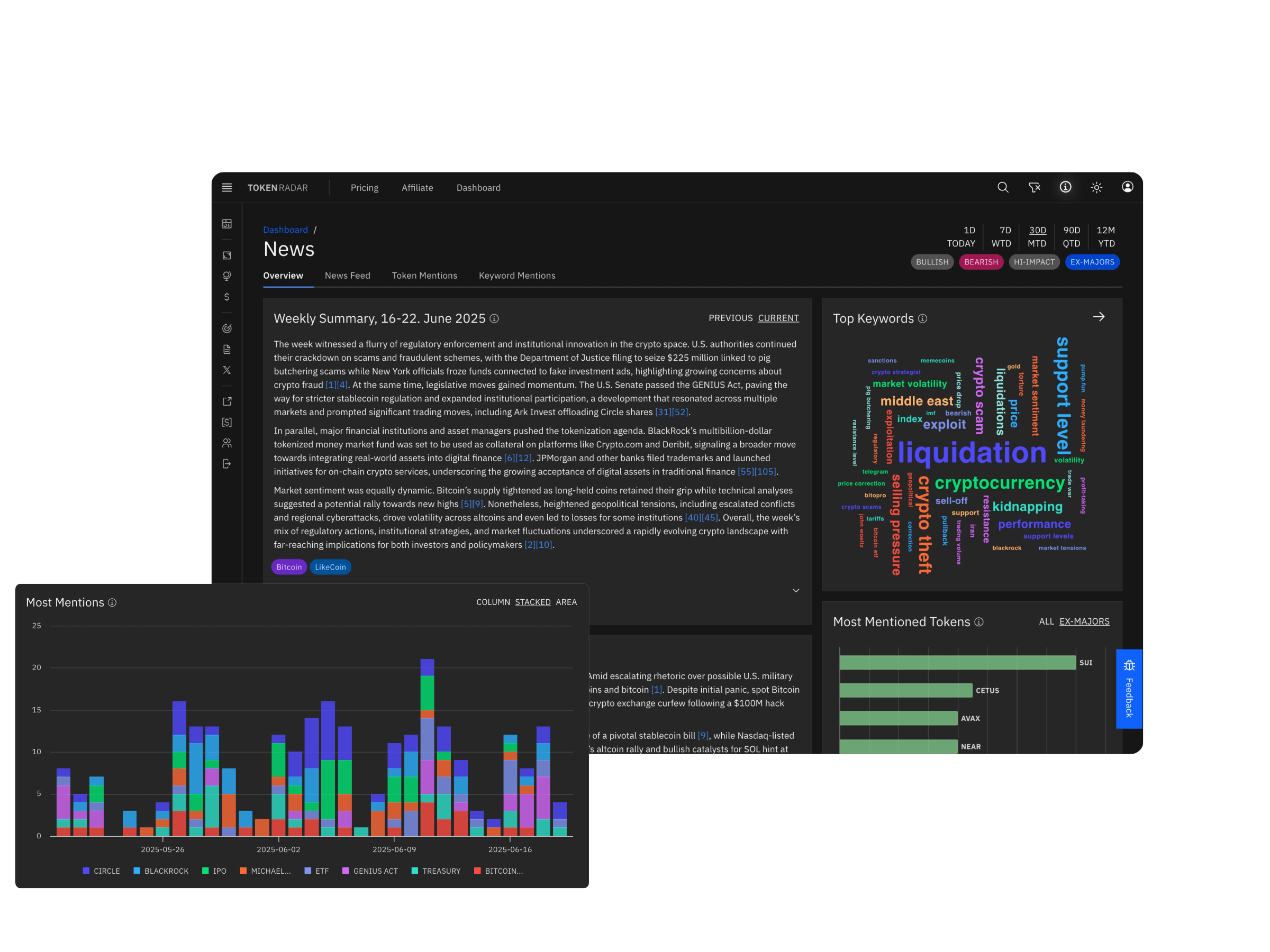 Stay informed with AI-powered daily and weekly news digests. Track trending keywords and token mentions, and filter the signal from the noise - so you stay up to date, not overwhelmed.